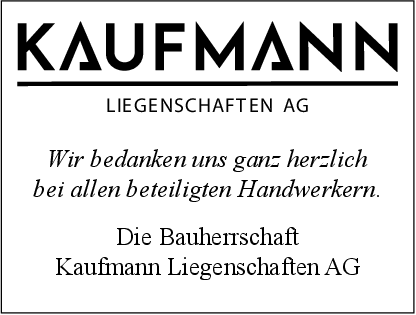 Ein besonderer Dank gilt der Gemeinde Herisau für die konstruktive Zusammenarbeit, der Bauherrschaft Kaufmann Liegenschaften AG für das entgegengebrachte Vertrauen, den beteiligten Handwerkern für die saubere und termingerechte Ausführung sowie den Nachbarn für ihr Verständnis während der Bauzeit. Die Kobelt AG freut sich, mit der Sanierung der Gibelhalde einen wertvollen Beitrag zum Herisauer Wohnraum geleistet zu haben.
