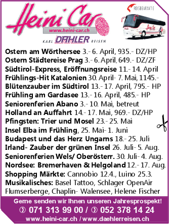 Telefon 071 313 99 00, 052 378 14 24 oder www.heini-car.ch