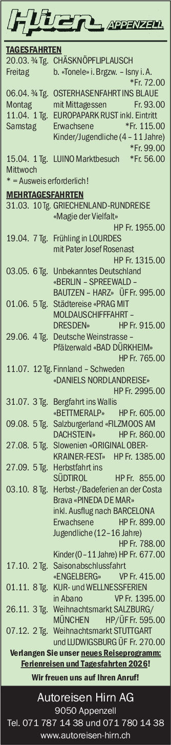 Autoreisen Hirn AG